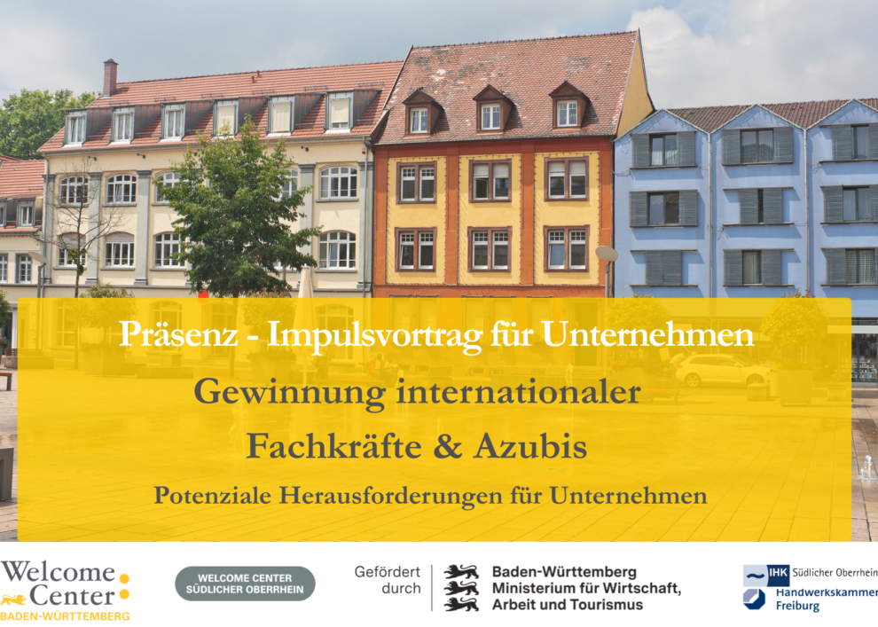 Das Welcome Center Südlicher Oberrhein beruht auf einer Kooperation der Handwerkskammer Freiburg und der IHK Südlicher Oberrhein, ist eines von insgesamt 12 Welcome Centern in Baden-Württemberg und wird unterstützt vom Ministerium für Wirtschaft, Arbeit und Tourismus Baden-Württemberg.