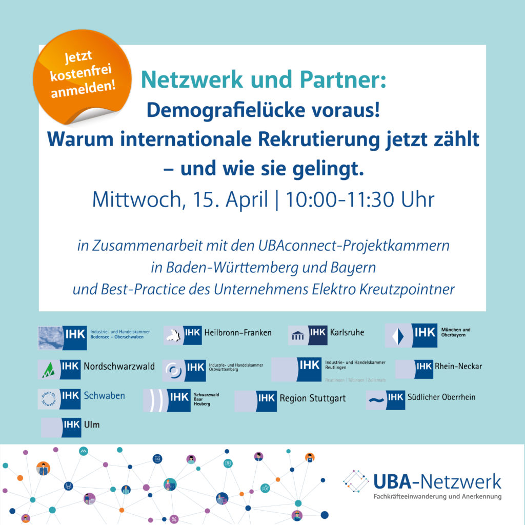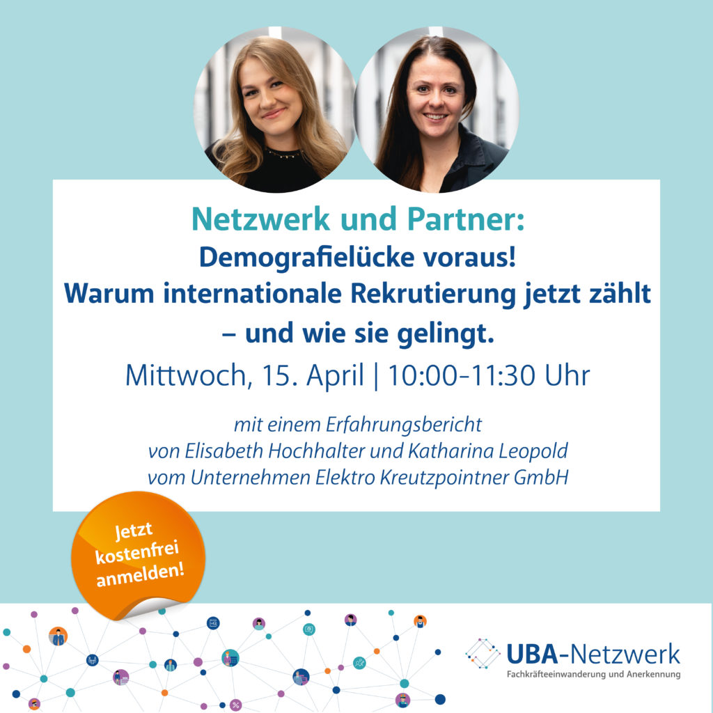 15.04.2026: Webinar: „Demografielücke voraus. Warum internationale Rekrutierung jetzt zählt – und wie sie gelingt“