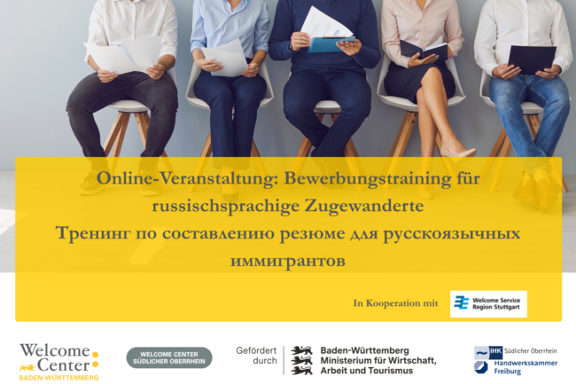 Online-Veranstaltung: Bewerbungstraining für russischsprachige Zugewanderte Inhalte der Veranstaltung: Kurzer Überblick: Anerkennung ausländischer Abschlüsse (10–15 Min.) Sie erfahren, wann es sinnvoll ist, einen ausländischen Abschluss anerkennen zu lassen, wie das Verfahren abläuft und welche Unterlagen dafür benötigt werden. Dieser Überblick hilft Ihnen, den weiteren Bewerbungsprozess besser einzuordnen. Eine Anerkennung verbessert die Chancen bei Bewerbungen. Hauptteil: Bewerbungstraining in…